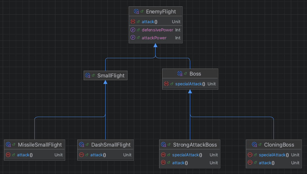 sealed class의 가장 큰 이점은 모든 경우의 수를 커버할 필요가 있는 패턴 매칭 체크를 완벽하게 해낼 수 있다는 것이다. 위에서 정의한 class로 예를 들면, 우리는 JungleAnimal의 자식 클래스에 대한 모든 가능한 경우를 커버할 수 있다.