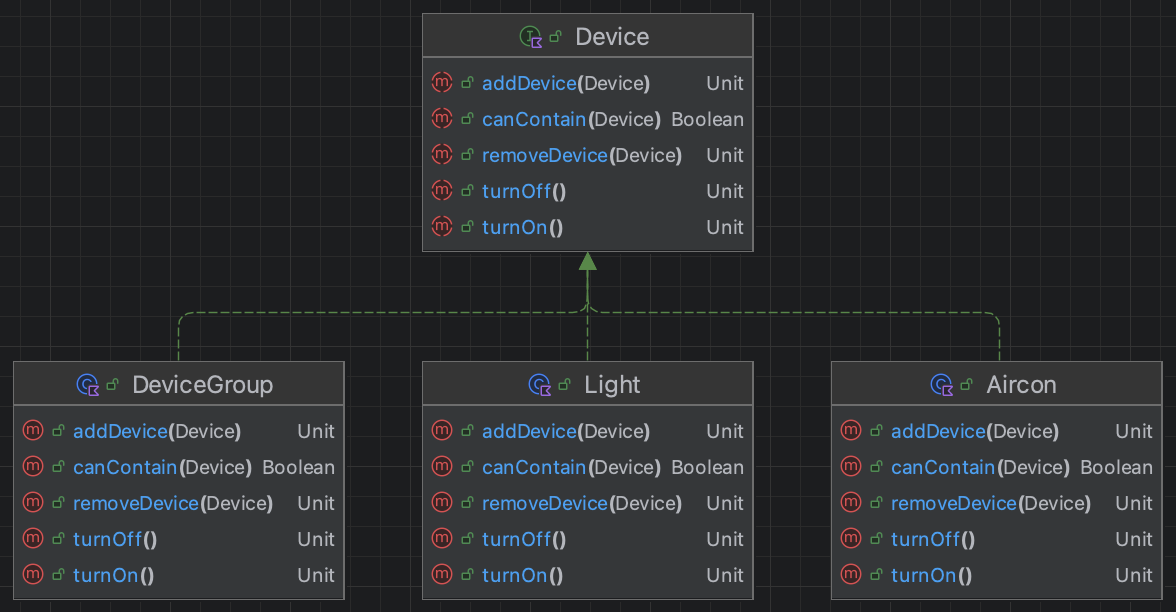 인터페이스와 이를 구현하는 2개의 클래스를 예시로 살펴보자.